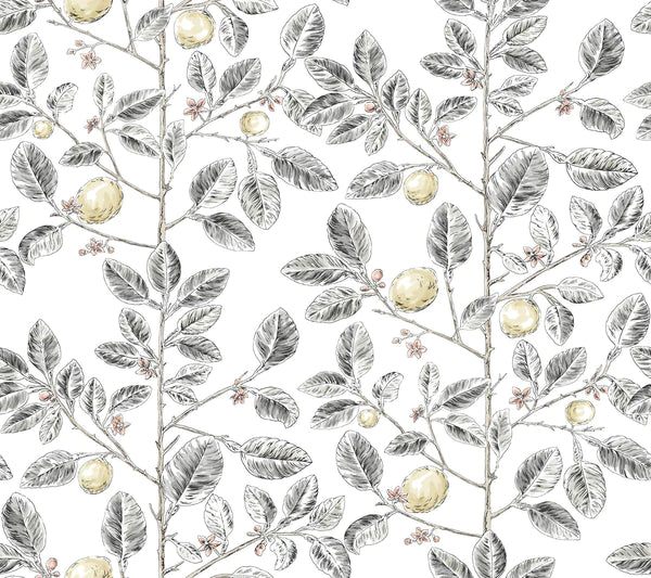 Limoncello's perfectly pin-straight groves are lovingly painted in shades of yellow, green, and brown accented by delicate pink blossoms.
