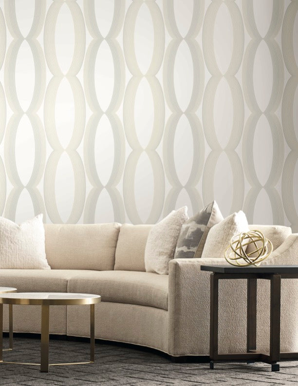 The oversized elliptical shapes of the pattern Progression Ogee are emphasized when outlined by shadowed rings of monochrome and subtle designer color.